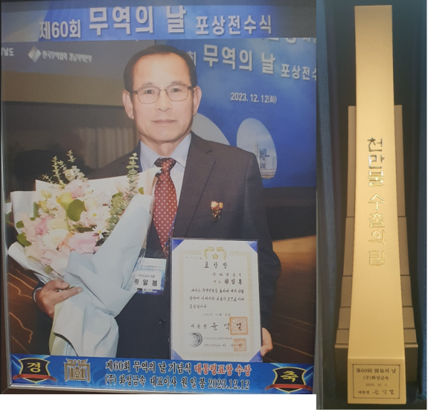 제60회 무역의 날(2023년12월05일)에 1000만불 수출의 탑 및 대통령상을 수상하였습니다.